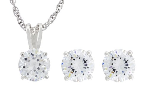 Platinum Plated Sterling Silver Clear Round Cubic Zirconia Pendant with Stud Earrings Set